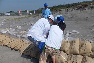 「子ガメ観察会&サスティナブルビーチ作戦」は、環境マネジメントシステムの一環として毎年開催されるイベントです。広大な砂浜の清掃、修繕作業、外来種植物の駆除を行います。