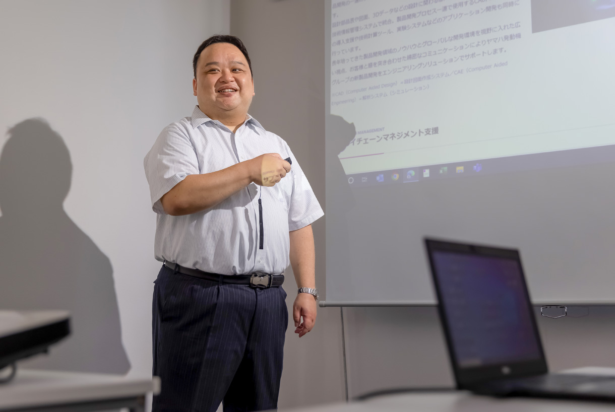 現在はヤマハ発動機グループの国内SCM(サプライチェーン・マネジメント)を支えるシステムの運用保守をメインで行う部門でチームリーダーをしています。チームのマネジメントをメインに、状況により運用保守開発業務の支援・お客様や他部門との折衝を行っています。