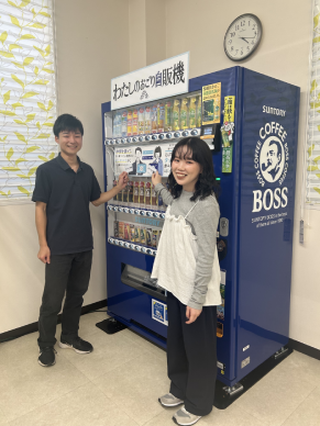 二人同時に専用のカードをかざして、各々好きな飲み物を無料でもらえる自販機で、いろいろな人とコミュニケーションをとる良い機会になっています。