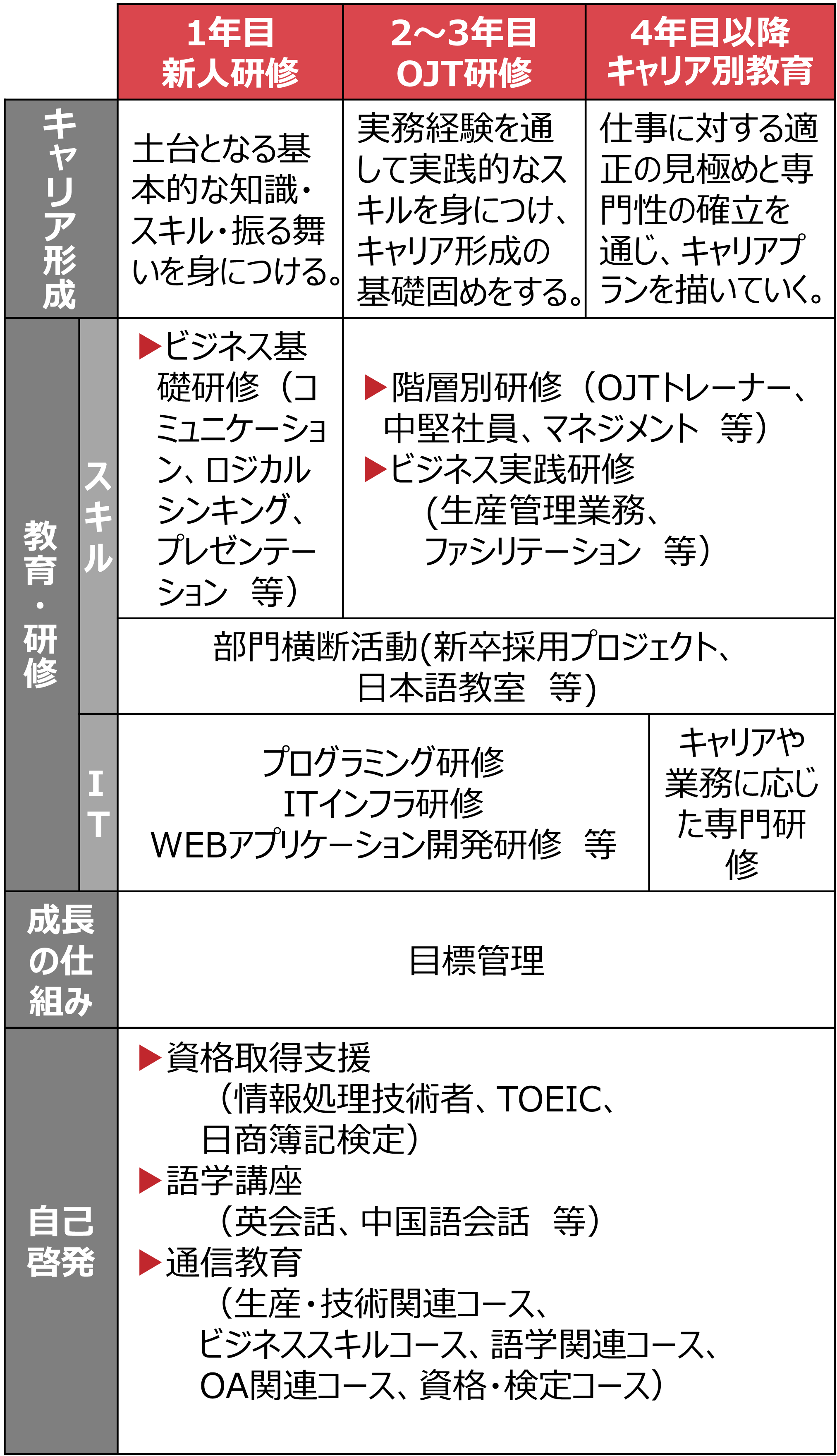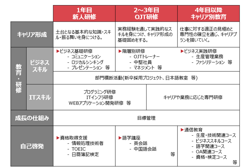 基礎スキルとなる情報技術・TOEIC・簿記に対する自己啓発を支援しています。