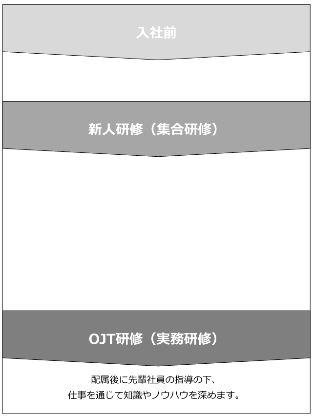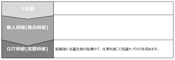 ITの基礎からITインフラの知識、プログラミング実習など、システム開発の実践スキルが段階的に習得できる充実した研修プログラムになっています。