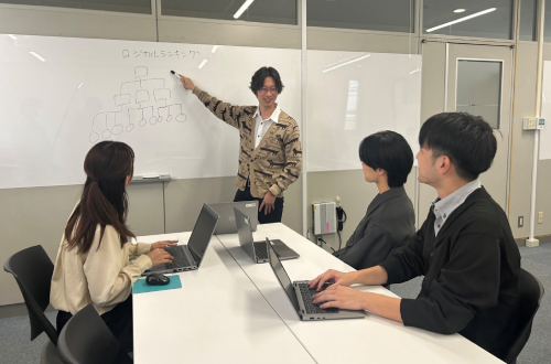 社会人としての基本的なマナーを学びます。挨拶、電話応対、名刺交換、ホウ・レン・ソウ(報告・連絡・相談)など、学んだことをビジネスのあらゆる場面で活かせます。